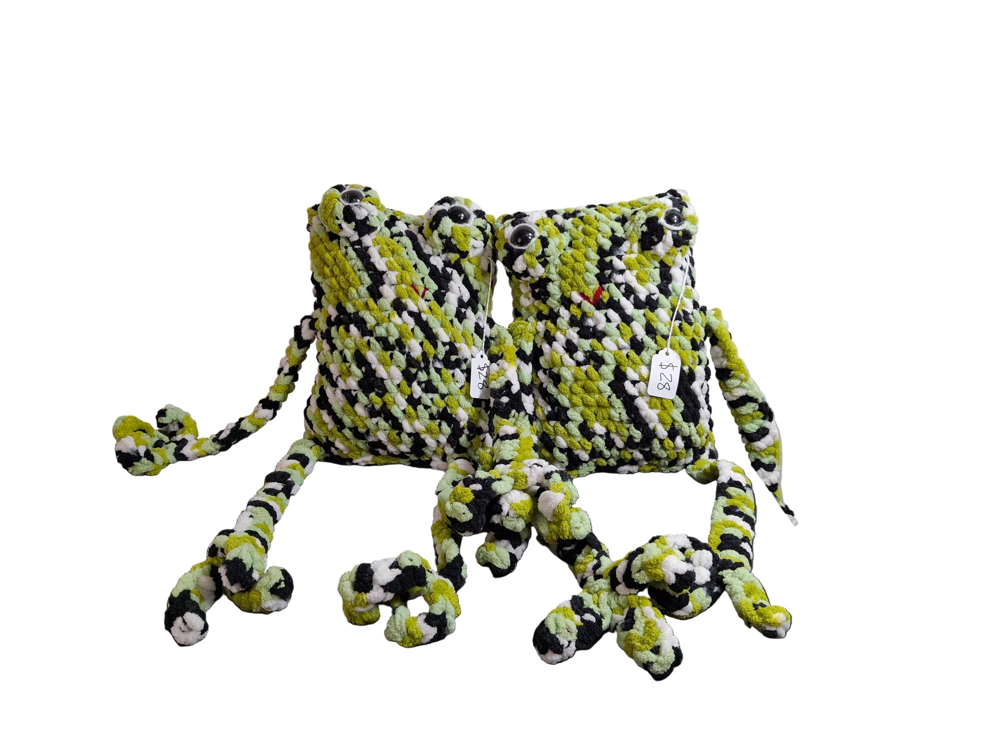 Say hello to our Handmade Crochet Leggy Frog ā a whimsical stuffed animal toy made with love, in two different sizes, perfect for little hands and big imaginations. These cute crochet frogs feature long, floppy legs and a gentle smile, bringing character and charm to playtime or nursery decor.